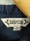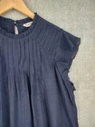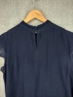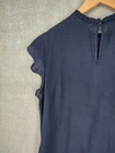 Nanette Lepore Blouse Womens XL Navy Blue Pleated Flutter Sleeve Keyhole Top Condition: Gently worn, no visible flaws Features lightweight, semi-sheer material with vertical pintuck pleats on the front Flutter sleeves with soft ruffle detail at shoulders High crew neckline with subtle ruffle trim Keyhole back with button closure Material: Tag is not visible for fiber content Solid deep navy blue color, unlined Size: XL (Womens) - see photos for measurements Brand label: nanette Nanette Lepore Made in China Perfect for work or casual wear, feminine and versatile style 50-4093