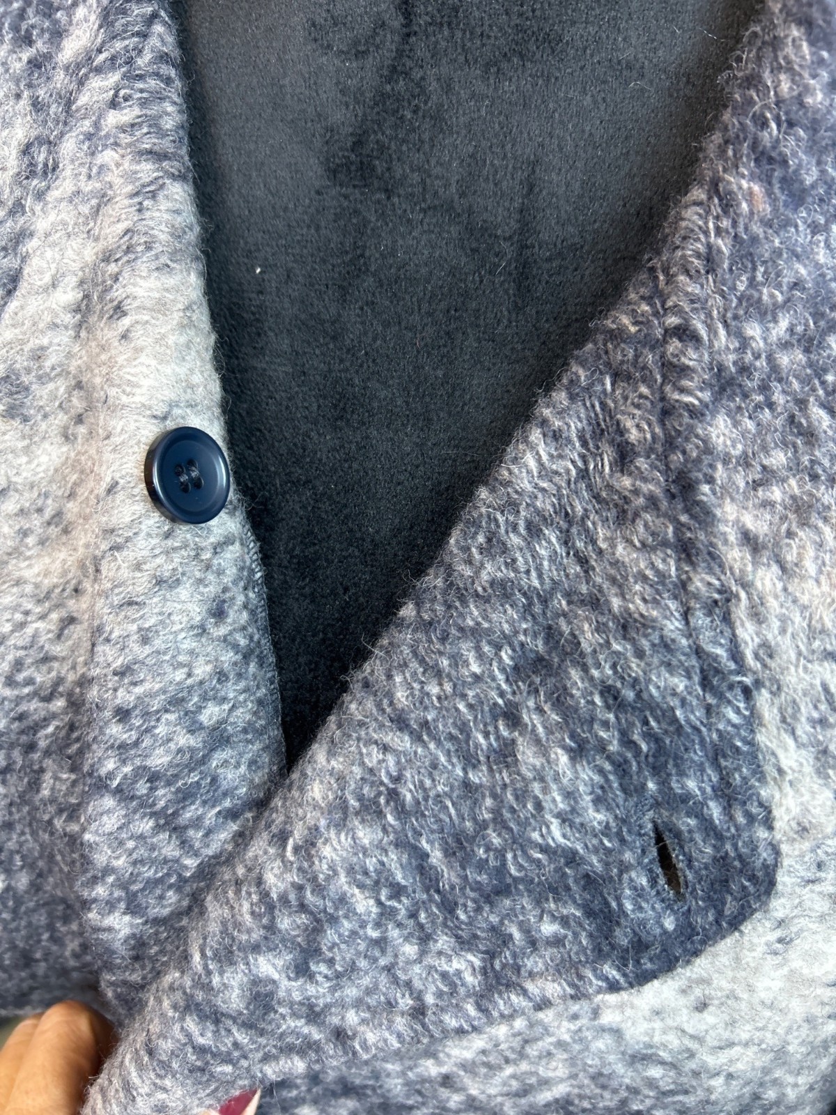 Elevate your cold-weather style with this stunning Nanette Lepore wool-blend ombre coat. Designed with a soft brushed texture, dramatic draped collar, and an effortless open-front silhouette, this jacket delivers both warmth and high-end style. The blue-gray ombre pattern adds a modern, cozy vibe that pairs beautifully with jeans, dresses, or layered outfits. This coat is perfect for fall, winter, and chilly nights out. Chic, comfortable, and incredibly flattering — a must-have piece for anyone who loves polished, elevated outerwear. Women's Size: L • Ombre design with gray tones • Open front with a collar button closure • Large, statement collar • Cozy wool-blend material • Mid-thigh length coverage Dry Clean Only Condition: Pre-Owned Like New