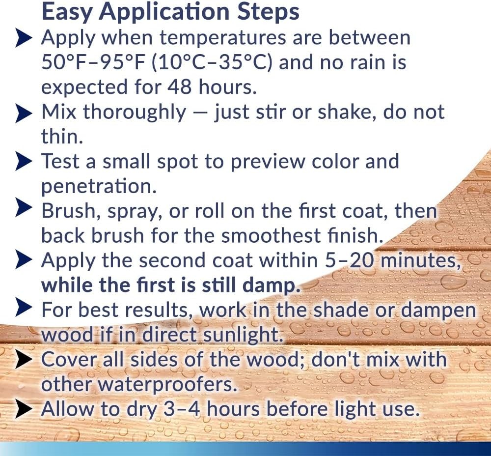 WATER-BASED POLYURETHANE WOOD FINISH: Our sealant provides top-notch protection against wear and tear in high traffic areas. It's odorless and ideal for use on wood siding, log homes, swing sets, outdoor furniture, wooden deck and fence, and more. WOOD SEALANT: Unlike many sealers that only form a topcoat, our protector penetrates below the surface to create a long-lasting, water-resistant shield around the wood. It helps protect against the elements. FLOOR SEALER APPLICATOR: Our premium gloss is ultra-low VOC and great for enhancing the extended life of your exterior flooring. The sealant can be safely applied around your home, landscaping, vegetation, or over any water area. WATERPROOF SEALER: Ditch the oil-based sealers and choose a UV-stable coating option. Our fast-drying liquid creates a flexible, breathable barrier and provides a no-fuss, easy clean-up with soap and water, as it allows the wood to grey naturally. Our user-friendly wood sealers and stains are an effective way to protect your lumber or concrete against water damage. When you use , you have the satisfaction of knowing our products will not harm pets, plants, or people.