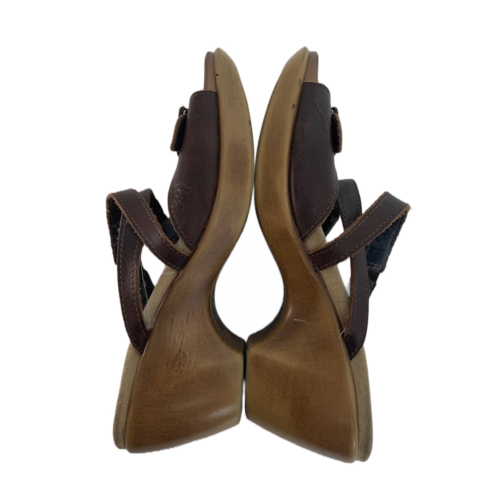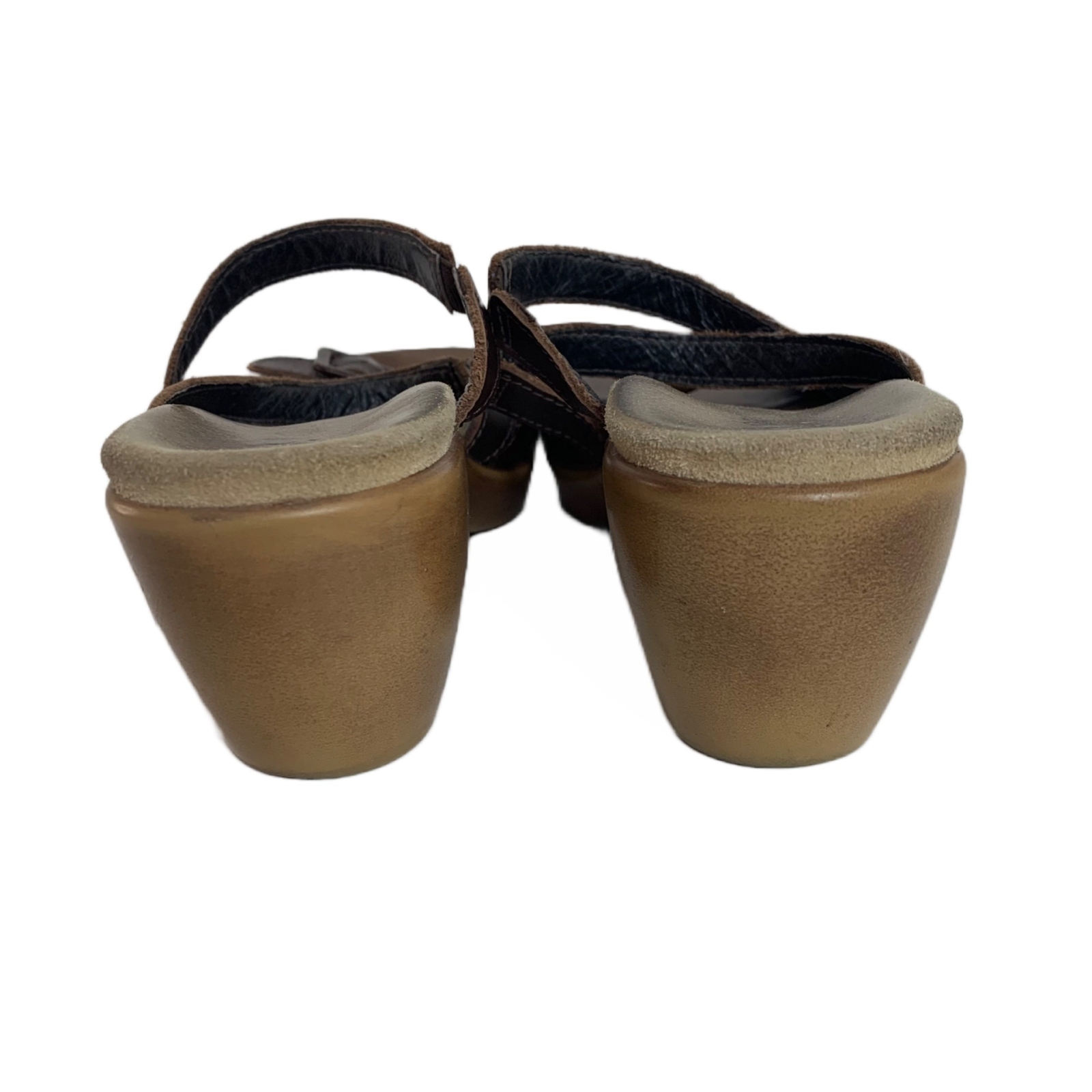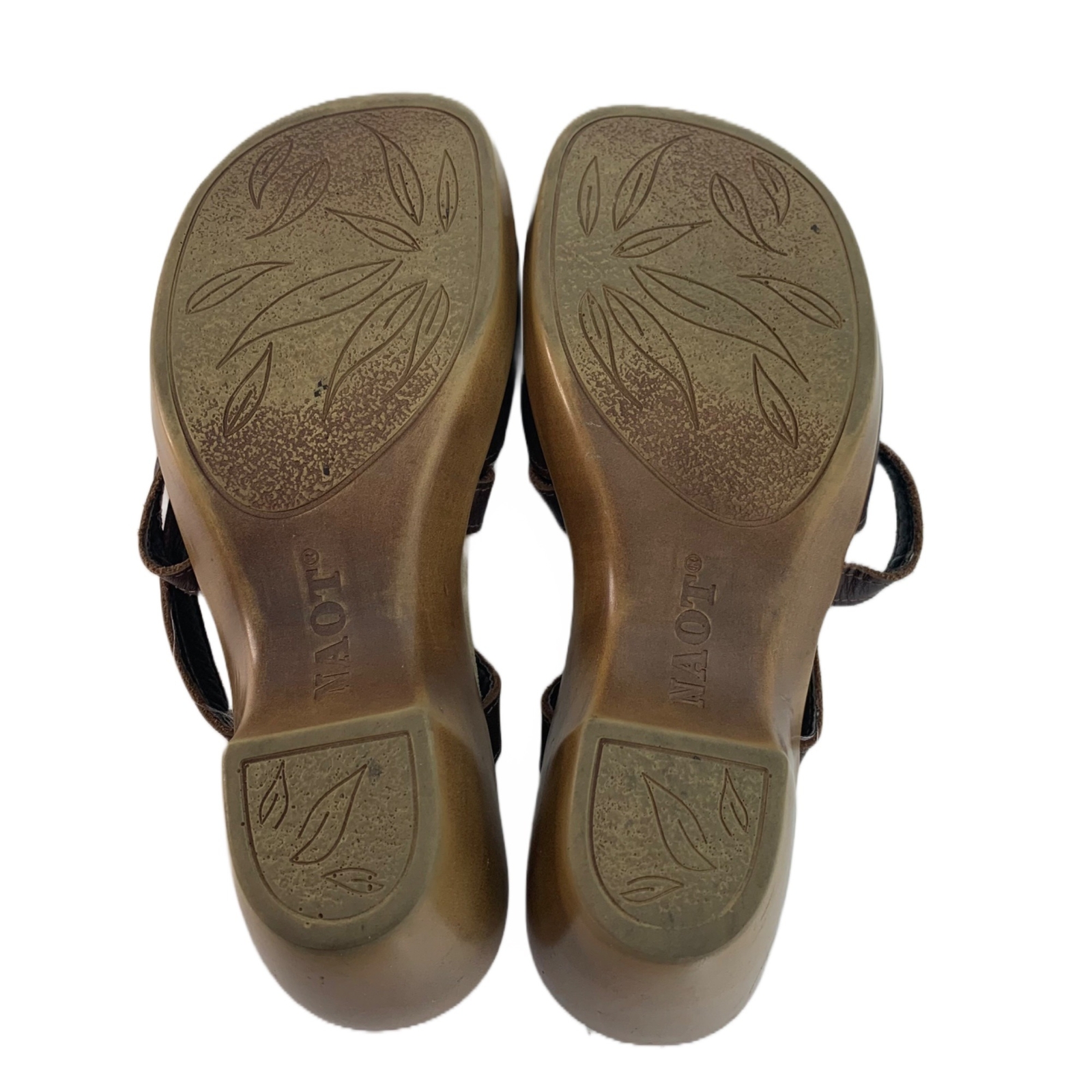 Naot Brown Strappy Wooden Heeled Sandals - Size 7 Great preowned condition! Brown, strappy leather upper with buckle. Soft footbed. 2.75” heel. Made in Israel. 2P30 53-4126 1 lb 11 oz Tags: minimalist, spring, casual