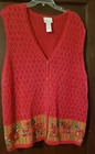Napa Valley Knit Sweater Vest 1X Red. V-Neck. Button front. Roses at hem line. 29" Long. Style WS40V54. 55% Rame, 45% Cotton MW