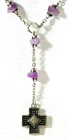 Vintage Napier Y- shaped Necklace Amethyst Stones - Silvertone Cross Excellent Condition