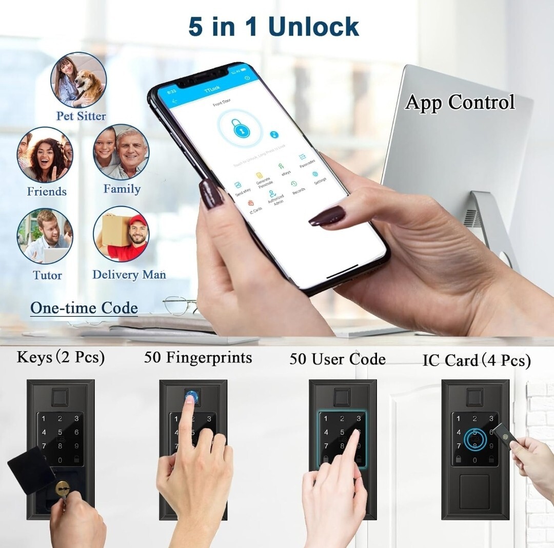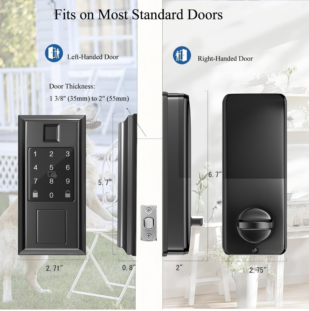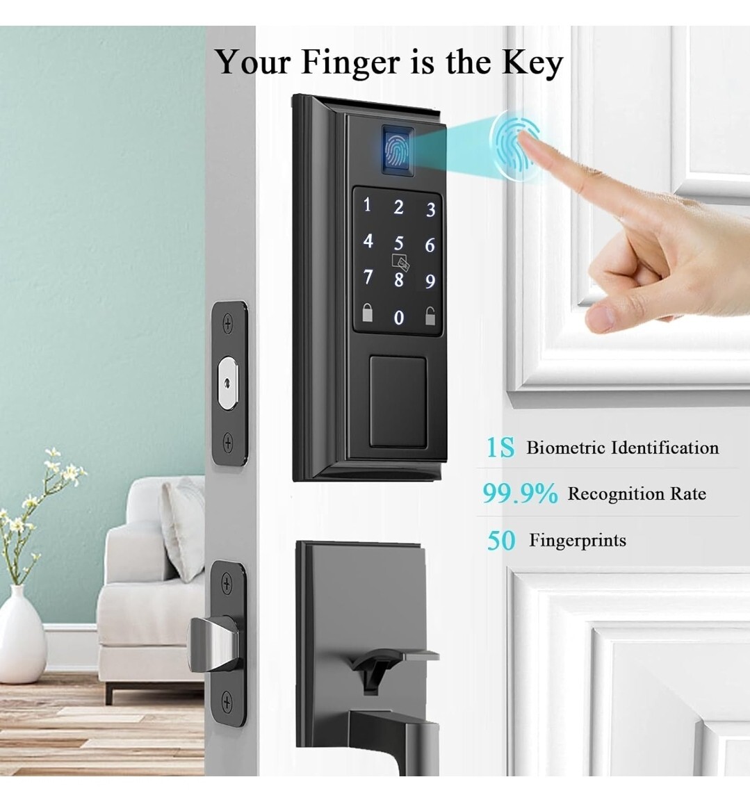 Smart Lock - Keyless Entry Door Lock - Electronic Deadbolt Keypad - Smart Door Locks for Front Door, via Bluetooth App/WiFi(Need Gateway) Control, Matte Black New unused in open box Has all necessary pieces Missing 1 screw (just an extra one for Latch. Still have 4 necessary to install) 2 key card 1 backup key (Can always get replacements if necessary but with all the options to open and close this is more than enough)