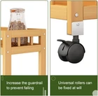 Product Description 【Corner Storage Expert】:Our slim rolling shelf can make full use of small corners.Easily slide into the small space next to the refrigerator, washing machine, sofa or closet. 【Flexible Lockable Wheels】:Equipped with movable and lockable wheels, they can rotate 360 degrees. When it needs to be fixed, the wheels can be locked to prevent slipping. You can easily move or stop at any location you need. 【Multifunction Storage Cart】:You can use it anywhere in your home. Its fence design prevents items from falling and is very suitable as a bathroom trolley, kitchen storage trolley, dining trolley, service trolley, etc. You can use it to put toiletries, towels, decorations, snacks, tools, etc., to keep the space tidy. 【Fine Craftsmanship】:After our kitchen carts are carefully polished, there will be no burrs to scratch your hands. All corners are designed with radian to avoid injury. A safe varnish is used to cover the surface, making it smooth and easy to clean. 【Easy to Assemble】:Contains detailed instructions and necessary hardware, you can easily assemble our rolling carts. When assembling, please wear gloves, because the material is natural bamboo, please be careful not to tighten the screws too much, so as not to cause the shelf to crack.