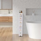 $ 35.73-Tier Rolling Storage Cabinet 41x17x78cm Semi-Clear Bathroom Organizer with 4 Wheels