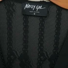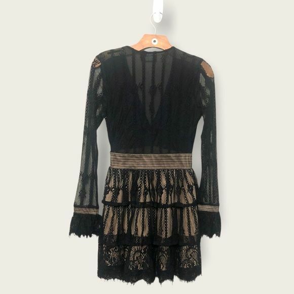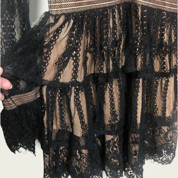 Nasty Gal Women’s Black Lace Ruffled Belted Boho Long Sleeve Dress Size S Deep v-neck Long sleeves Ruffle cuffs Tiered, ruffled a-line silhouette Side hidden zip 100% Nylon; 100% Polyester Lining Approximate Measurements in Photos! New Without Tags! Thank you for stopping by!
