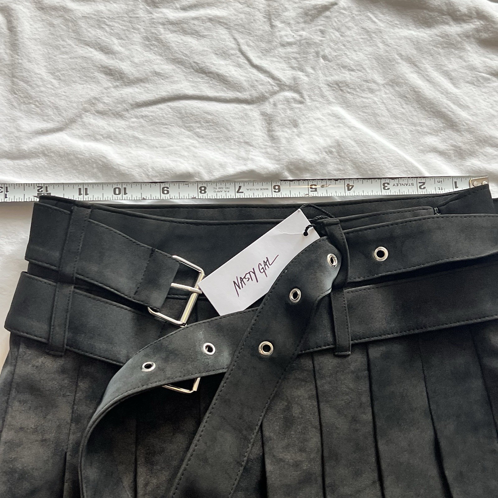 Sharp pleats lend a preppy edge to this belted miniskirt made from buttery faux suede. • 17" length (size 8) • Removable belts • 55% polyurethane, 45% polyester • Dry clean • Imported • Item # 10503029