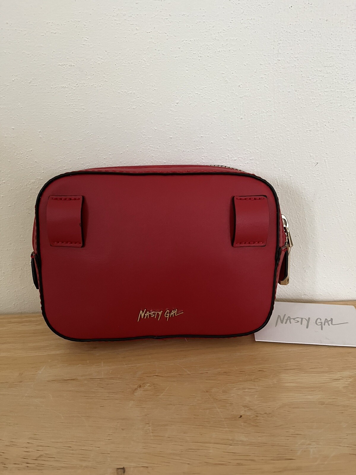 Nasty Gal Women's Red Ribbed Leather Adjustable Strap Belt Bag Purse