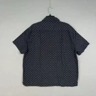 Nat Nast Shirt Mens XL Blue Silk Cotton Short Sleeve Geometric Button Front Gently worn, no visible flaws. Fabric is clean with no stains, holes, or tears noted. All buttons present and secure; seams and hems intact. Light signs of normal wear and minor wrinkling from storage. Brand: Nat Nast Luxury Originals Item: Men's short sleeve button-front shirt Tag size: XL Material: 70% Silk, 30% Cotton Color/Pattern: Navy blue and black with allover geometric zigzag pattern (light/white detailing) Features: Camp collar style, left chest pocket, straight hem with side vents, decorative buttons Brand markings: Nat Nast Luxury Originals neck label; size and fabric tag at collar Notes: See photos for fabric texture and fit details. 21995 Measurements: - Previous washings may change the sizing written on the tag. - Please refer to the photos above for all measurements. - Please compare our measurements to that of one of your favorite garments. - Please note, item measurements are approximate . All items are bagged and sealed after being photographed, then stored in a smoke free environment to ensure the item is exactly the same as when photographed. All items have been washed per eBay standards & policies. I carefully package and ship daily. Feel free to contact me with any questions.