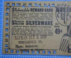 Description: Nathan Ely & Son Fountainville PA Bucks County Reward Card Shelton Silverware. Poor condition. Interesting local item. Questions and offers welcome. Please review entire listing (including condition, title, pictures, description, and terms) before committing to purchase this listing. Before agreeing to purchase this listing, make your own determination on condition of the item(s) being offered in this listing. Pictures are part of the description and are provided to help illustrate condition. Since descriptions and opinions of condition can vary, seller provides prospective buyers with the ability to request more information and additional pictures before the close of this listing. When in doubt, please contact Taggart Neveling Books Ephemera, LLC "the seller" through eBay before you bid or agree to purchase this listing. This helps ensure a smooth transaction, one where Taggart Neveling Books Ephemera, LLC gets a sale and the buyer gets the item(s) they want to purchase. Condition & Disclosure of All Faults: All items appearing in this listing are pre-owned and are sold "AS-IS" and "WITH ALL FAULTS." No warranties, express or implied, are made in connection with this listing. Additionally, all other warranties not specifically listed above, are also disclaimed. Since the seller, Taggart Neveling Books Ephemera, LLC, does not provide any warranties with this listing, to the fullest extent allowed by law no sale shall be deemed invalid. A written description and uploaded pictures are offered to help provide a general idea of condition. Pictures are part of the description, but may not show every defect or flaw of an item or collection of items. The written description offered in this listing may not state every single defect or flaw in condition associated with item or items offered in this listing. However, Taggart Neveling Books Ephemera, LLC "the seller" offers potential buyers the ability to submit questions before agreeing to purchase this listing. Buyer agrees that a failure to exercise this option is not sufficient cause to initiate a return. Since Taggart Neveling Books Ephemera, LLC offers potential buyers the ability to submit questions before agreeing to purchase this listing, by bidding or agreeing to purchase this listing, buyer agrees seller has provided sufficient legal disclosure of all defects and faults, even if such defects and faults are not specifically identified in the written description or shown in the uploaded images. All statements and descriptions about age, authenticity, condition, fitness for a particular purpose, or origin of items offered in this listing, as well as those made in response to questions about this listing, reflect the opinion of the seller and are NOT offered as statements of fact. By bidding or agreeing to purchase this listing, the buyer agrees that to the fullest extent allowed by applicable law, Taggart Neveling Books Ephemera, LLC "the seller" will not be liable for any defect, error, or omission in this listing. By bidding or agreeing to purchase this listing buyer agrees to have performed all due diligence beforehand. By bidding or agreeing to purchase this listing buyer agrees all items offered in this listing may require cleaning, conservation, or repair. By bidding or agreeing to purchase this listing, buyer agrees ALL SALES ARE FINAL. NO REFUNDS. NO PARTIAL REFUNDS. NO RETURNS. NO EXCHANGES. Digital Photos and on Screen Viewing: Cameras and computers sometimes display colors differently. Colors, when viewed on a computer screen, can be lighter or darker than the actual item(s) that is being photographed. Please keep this in mind when you place your bid. Please also note: No display props or materials (tape measures, stands, or other items that may be used to help display a listing) are included. Taggart Neveling Books Ephemera, LLC welcomes questions, but asks all potential buyers to submit questions at least one day before the close of this listing. This helps ensure there will be enough time to respond to questions before the close of the listing. Payment Policy: Payment is due within two days of the close of a listing. If a listing remains unpaid for three or more days the issue will be reported to eBay. Failure to pay for an item in a timely fashion may result in a buyer being blocked from both current and future listings offered under this user ID. Sales Tax, Use Tax, Other Taxes: Since tax laws vary by state, you may be responsible for remitting sales or use tax to the appropriate state agency. The bidder, by bidding, agrees that if any sales or use tax (or any other tax) is due on the item(s) purchased, it is to be paid and remitted to the appropriate agency by the buyer and not the seller. Please note that eBay has largely automated this process. However, if there is any error in eBay's collection or the calculation of tax due, the buyer agrees, to the fullest extent allowed by law, to pay the correct amount to the appropriate agency and to not hold the seller responsible for covering any additional amount of tax due. Shipping Policy: Shipping Cost for this listing (Within Continental US): Item will ship for free, with tracking, to continental US. Please note: No in-person pickups or deliveries are offered with this listing. Delivery for this listing will only be made via USPS mail. In listings without free shipping offered, total shipping cost includes all aspects of shipping, such as packing materials, time to pack the listing(s), time and expense incurred to get the listing(s) to the post office, and lastly postage. Postage is just one aspect of shipping cost. Please keep this in mind if you happen to see an instance where the shipping cost charged was higher than the postage cost. Time to Ship: All orders will ship within five business days. This means your order will ship, once it is paid for, within five business days. Additionally, orders will be tracked and tracking information will be uploaded the same