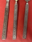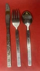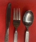 National Flatware ~Costellano~ Set Of Dinner Knife Dinner Fork Tablespoon Floral. All pieces are in very good condition with scratching. Shipped with USPS Ground Advantage for 8.00