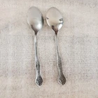 National Stainless NST2 ~ Set of 2 Soup Spoons 7 3/8" ~ Stainless Steel Flatware These pieces are in Used Condition. There are some light marks, scuffs, nicks and surface scratches consistent with age and use. *Please note there is a difference in the glossiness of the bowls. One is more glossy and the other has more of a brushed look.* Please view the photos carefully for condition details. Don't forget to check out the other items in my shop. I'm getting in new fun things all the time. Thank you for looking! Have a great day!