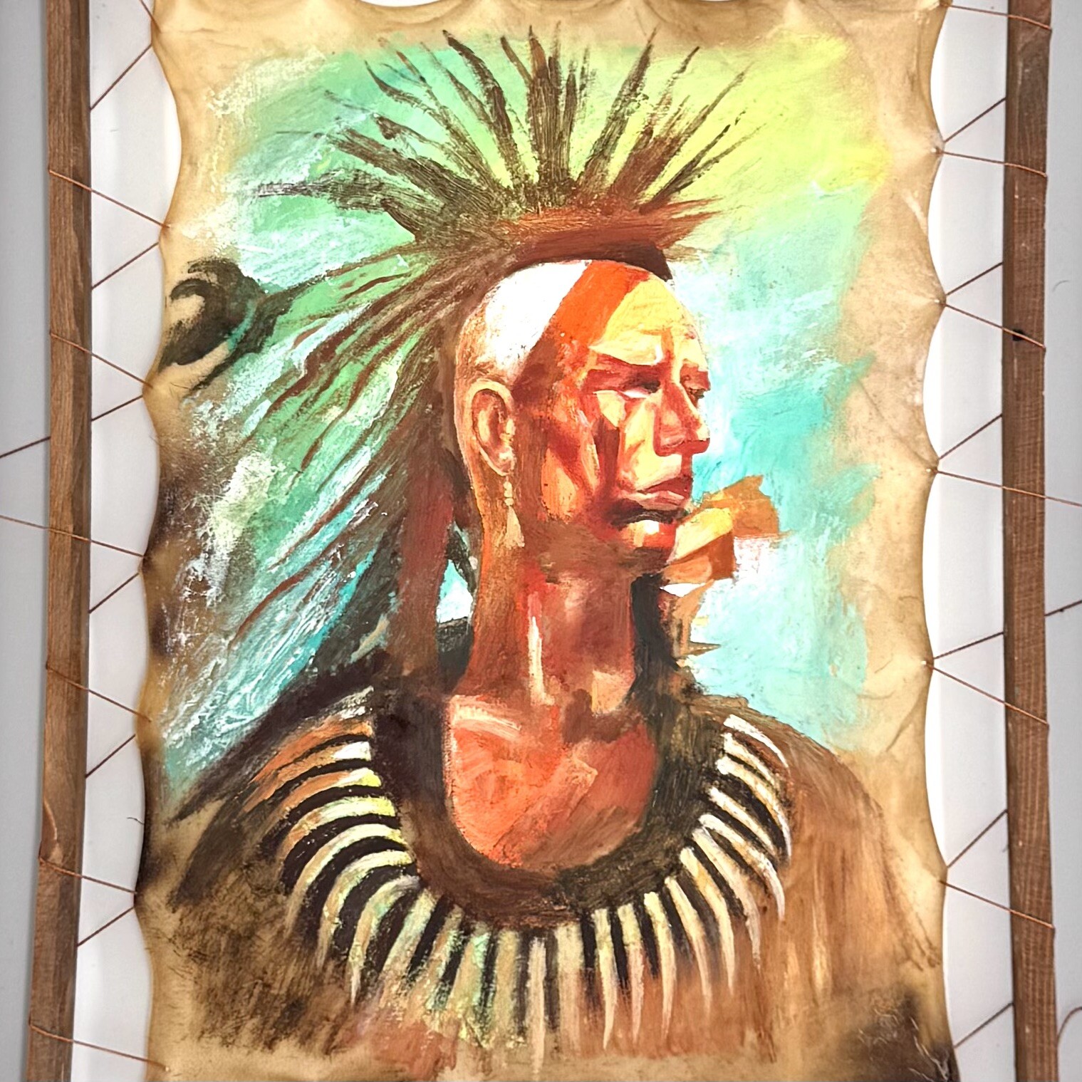 Theme: Art Personalization Instructions: Gift Personalization Style: Americana, Art Deco, Contemporary Art, Folk Art, Graffiti Art, Illustration Art, Indian, Mexican, Miniature, Native American Title: Framed Leather Surface Oil Painting Personalize: Yes Year of Production: 2021 Type: Oil Painting Framing: Framed Region of Origin: America Time Period Produced: 2020-Now Artist: B.Kobilov Size: Medium Material: Leather, Wood, Rope, Oil Item Height: 17.5 Unit of Sale: Single Piece Culture: American Production Technique: Oil Painting Subject: Figures, Men, Native America, Native American Portrait, Native Oil Painting, Native Art Signed: Yes Features: Unique Leather Surface Fine Oil Painting Country/Region of Manufacture: United States Handmade: Yes Item Length: 21.5 Item Width: 1 Signed By: B.Kobilov Period: Ultra Contemporary (2020 - Now) Original/Licensed Reproduction: Original
