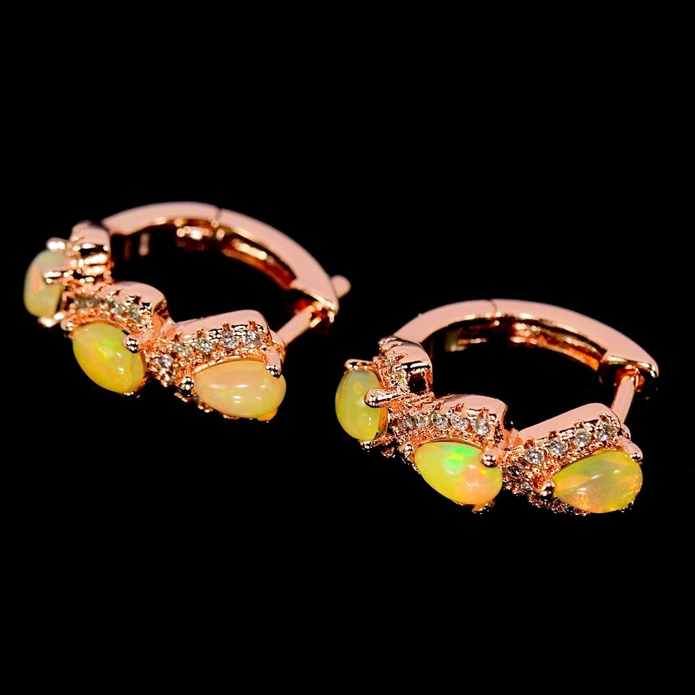 Natural AAA Rainbow Opal Pear Dangle Earrings with White CZ in 925 Sterling Silver