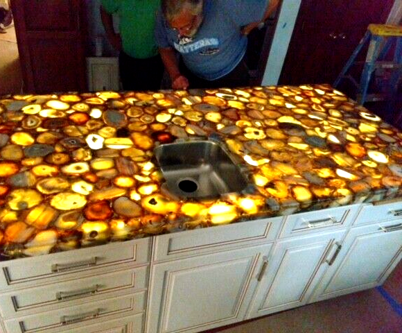This stunning agate countertop is a true masterpiece! The natural patterns and translucent beauty create a mesmerizing glow when backlit, making it a jaw-dropping centerpiece for any kitchen or vanity. Handcrafted in Agra by skilled artisans with heritage ties to the Taj Mahal, each slab feels like owning a piece of art. The polished finish highlights the agate's unique veins, and customization options let you create your dream surface. Beyond durable, it's a conversation starter that adds luxury to everyday spaces. The way light dances through the stone makes ordinary moments feel magical!