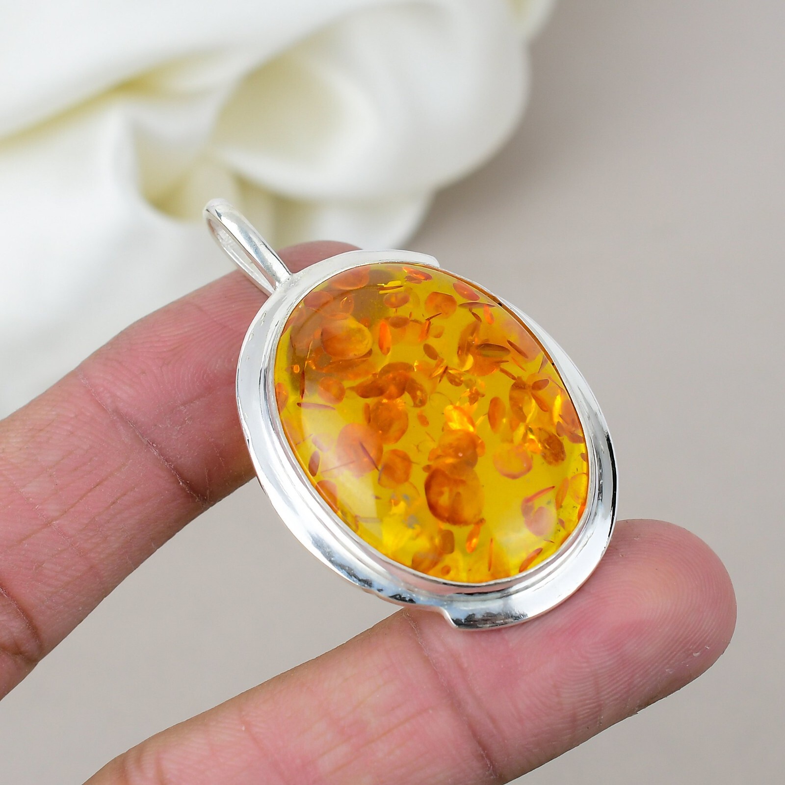 Natural Baltic Amber Gemstone 925 Sterling Silver Statement Pendant Jewelry Gift