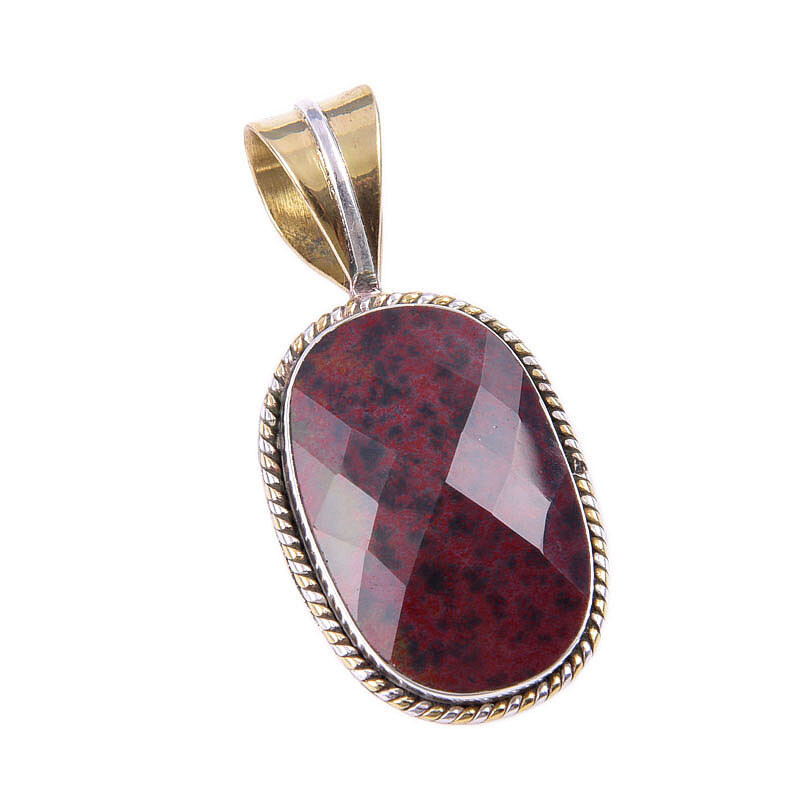 Natural Bloodstone Gemstone 925 Solid Sterling Silver TwoTone Pendant 1.50"