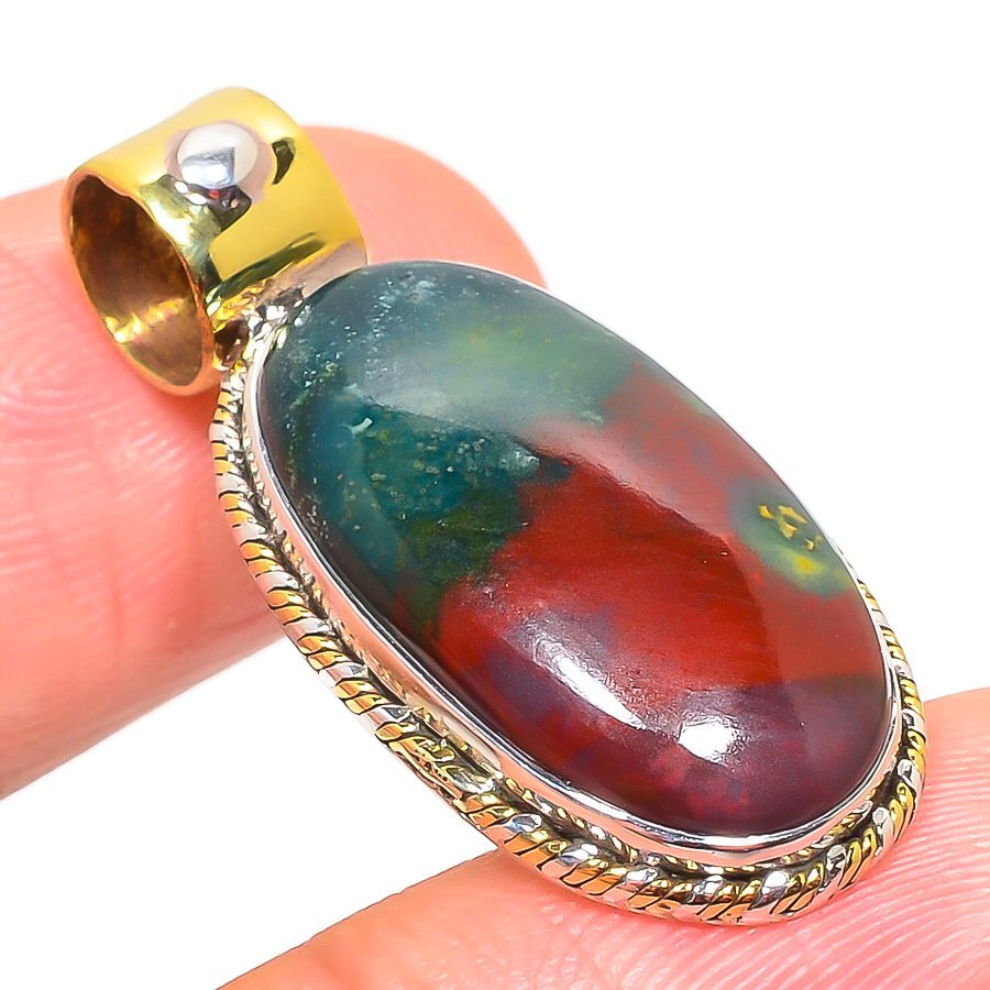 $ 10.33Natural Labradorite 925 Sterling Silver Two-Tone Pendant 1.50 Inch