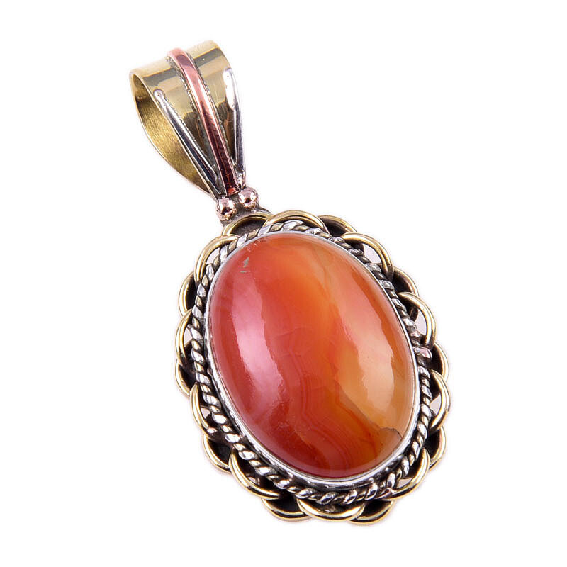 $ 7.63Natural Carnelian Gemstone Two-Tone 925 Sterling Silver Pendant 1.5 Inch