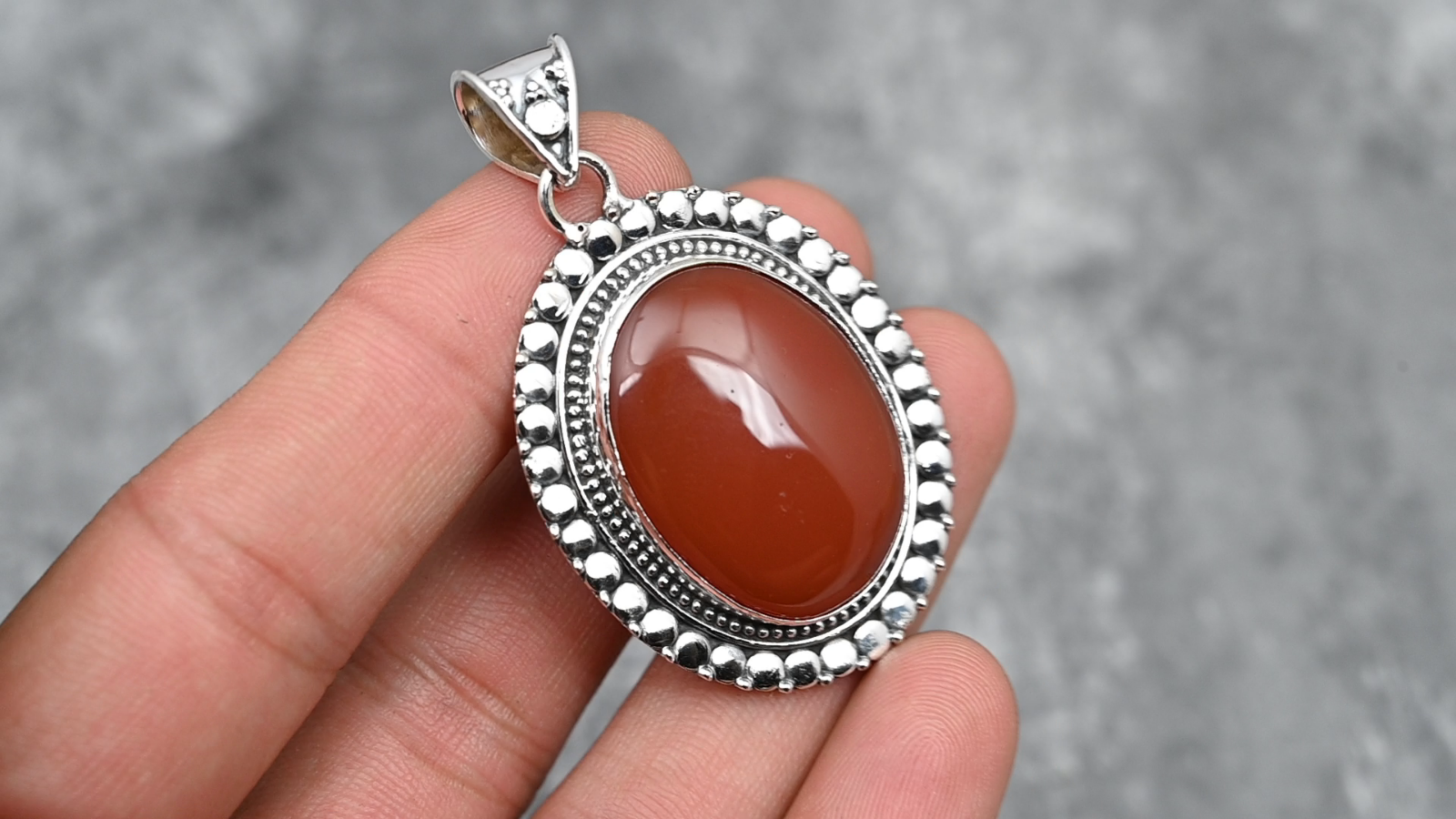 Natural Carnelian Gemstone Pendant in 925 Sterling Silver Handmade Jewelry Gift