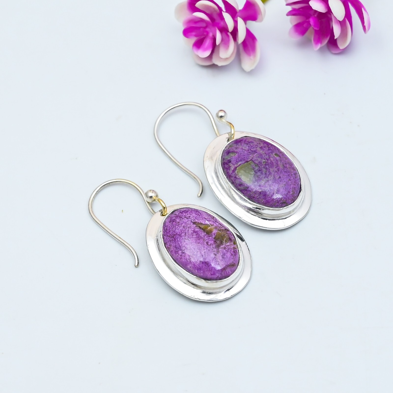 HomeNatural Charoite Gemstone Handmade Sterling Silver Earrings Gift Jewelry