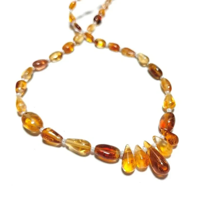 This is a 16" strand of natural Citrine beads in smooth teardrop and oval shapes, ranging in size from 4-15mm. The beads are handcrafted and have a glossy finish, making them ideal for jewelry making. The gemstones are a beautiful blue color, perfect for creating unique and eye-catching jewelry pieces. Quick Details: Material: Natural citrine gemstones Finish: Smooth teardrop and oval shapes Bead Size: 4 to 15 mm Strand Length: 16 inches Quantity: 1 strand