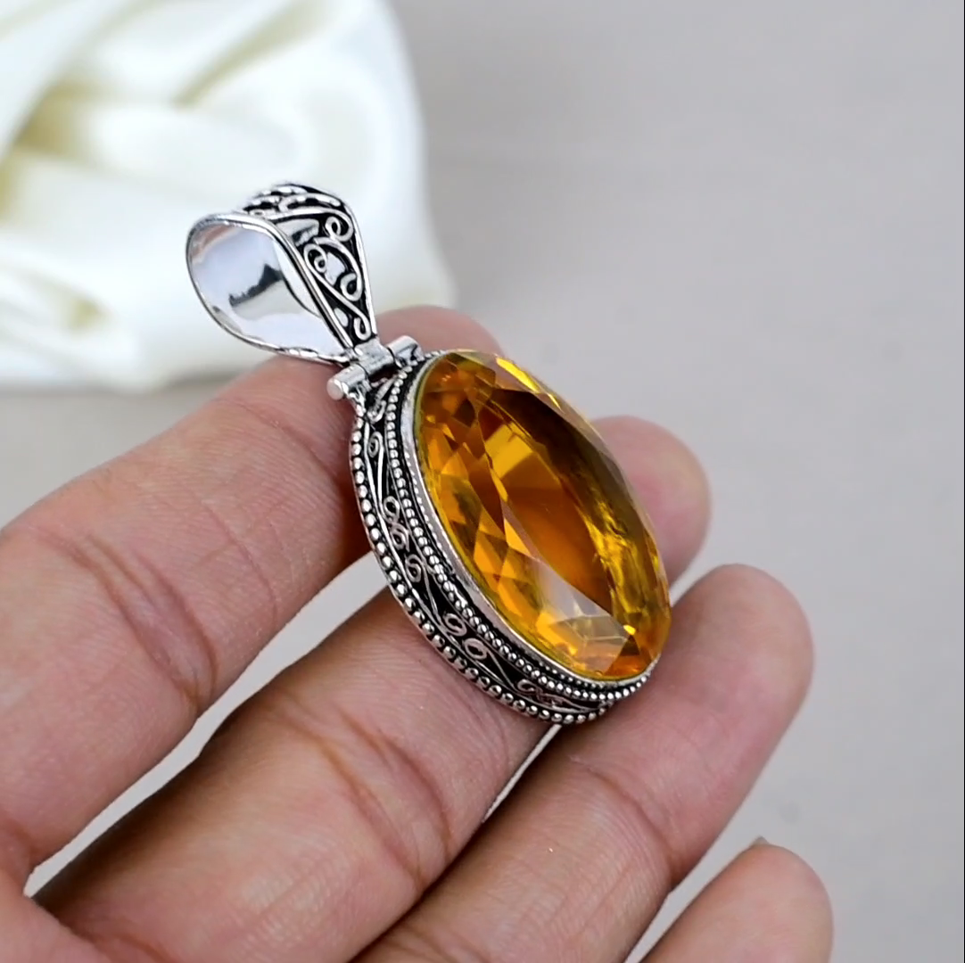 Certification:N/AFeatures:HandmadeNecklace Length:2.17"Country of Origin:IndiaColored Diamond Intensity:N/AMaterial:GemstoneBrand:HandmadeMain Stone Color:YellowSetting Style:Same As PictureType:PendantMain Stone Treatment:Not EnhancedMetal Purity:925Metal:Sterling SilverNumber of Gemstones:2Style:PendantTheme:Beauty, Bohemian, Ethnic, Halloween, Love, NaturePendant Shape:Same As PictureCollection:HandmadeNumber of Diamonds:N/AOccasion:Anniversary, Birthday, Christening, Christmas, Engagement, Father's Day, Mother's Day, Valentine's Day, WeddingMain Stone:CitrineCut Grade:N/ADiamond Color Grade:N/ACountry/Region of Manufacture:IndiaTotal Carat Weight:10 carat and aboveDiamond Clarity Grade:N/AColor:SilverPendant/Locket Type:Same As PictureSecondary Stone:CitrineClosure:Same As PictureMain Stone Creation:NaturalMain Stone Shape:OvalChain Type:N/ABase Metal:Sterling Silver