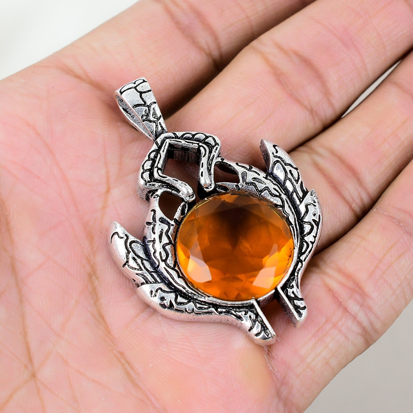 Natural Citrine Gemstone Pendant in 925 Sterling Silver Handcrafted Jewelry
