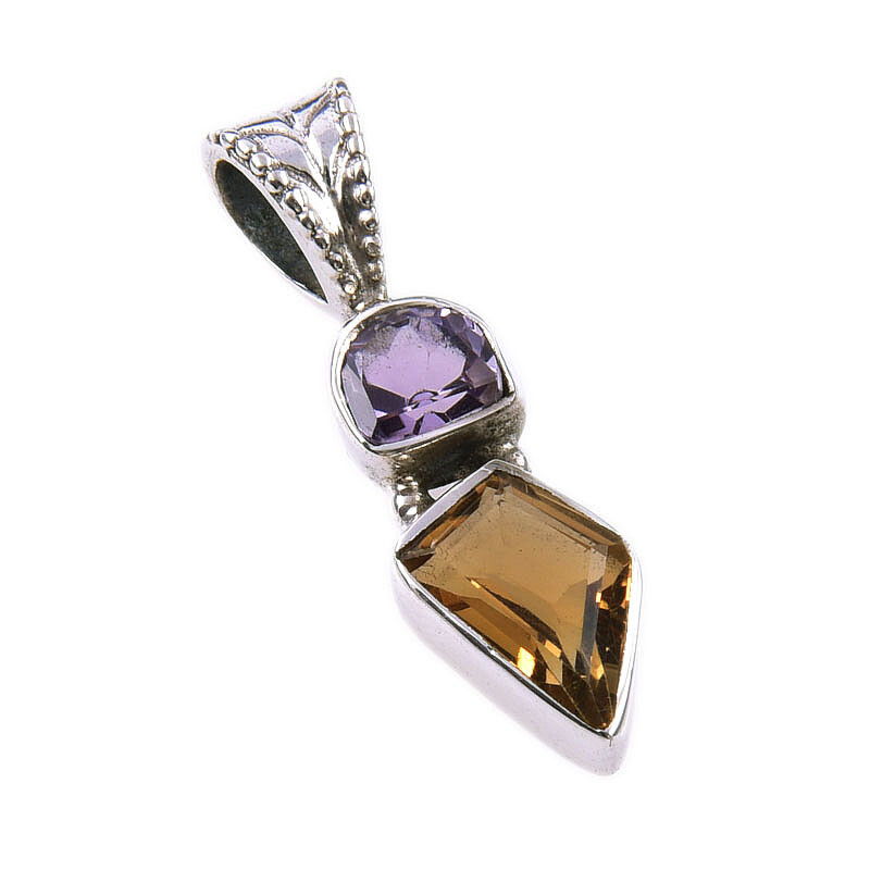 Natural Citrine Pink Amethyst Sterling Silver Jewelry Pendant 1 Inch