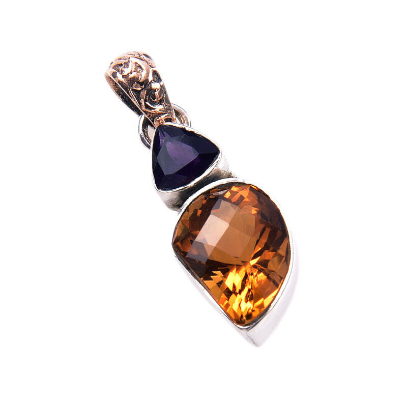 Natural Citrine and African Amethyst 925 Sterling Silver Pendant 1.25 Inch