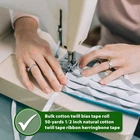 Colorfast Twill Cotton Tape & Cinta de Algodon: Compared to other sewing tapes, our soft cream twill ribbon is preshrunk, odorless, breathable, and machine washable & dryable, serving as heavy duty bias tape, rug binding tape, & seam tape for sewing. 1 1/2 In Cotton Twill Tape Ribbon or Sintas de Tela for Sewing, Hemming, Knitting, Quilting & Dressmaking: The cotton bias tape serves as great drawstrings for sweatpants, waistbands, necklines, hoodie strings, apron straps, & sewing bias tape. Cream Twill Tape Bias Binding Tape Fabric Ribbon: Perfect for ribbon trimming, strapping, & casing, the cotton twill tape 1 1/2 inches is great for creating duvet strings, towel hangers, tying curtains & cables, reinforcing buttonholes, & binding blankets. Herringbone Cotton Tape for DIY Crafting, Scrapbooking, Packaging, & Gift Wrapping: The cotton twill ribbon serves as great book binding ribbon, cotton binding tape for carpet, and woven ribbon for bag handle, banners, tags and labels, & home decor. Bulk 1 1/2 Inches Twill Tape Roll: This 50-yards natural twill tape roll features 1.5 inches wide twill tape. Great for making piping, seams, & finishing raw edge, the continuous natural bias tape is easy to sew and can be cut and trimmed without fraying.