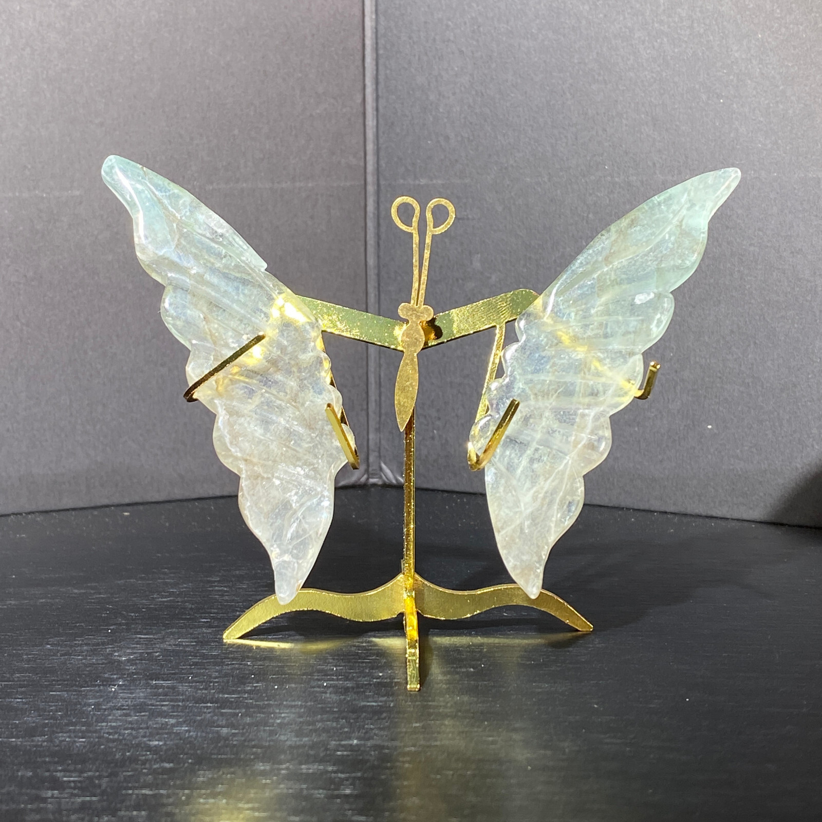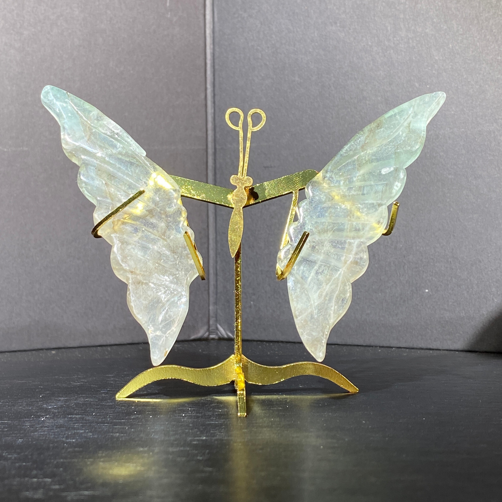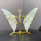 126G Natural Fluorite Butterfly Wings Healing Statue with Stand for Home Decor