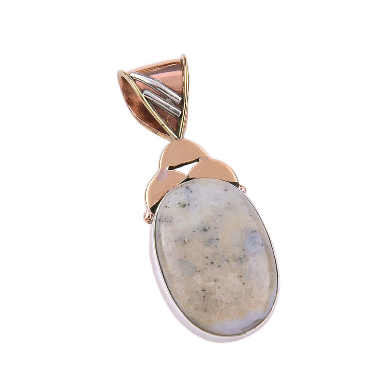 Natural Dendrite Opal 925 Solid Sterling Silver Gift TwoTone Pendant 1.75"