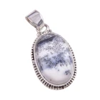 Natural Dendrite Opal Gemstone 925 Solid Sterling Silver Gift Pendant 1.5"