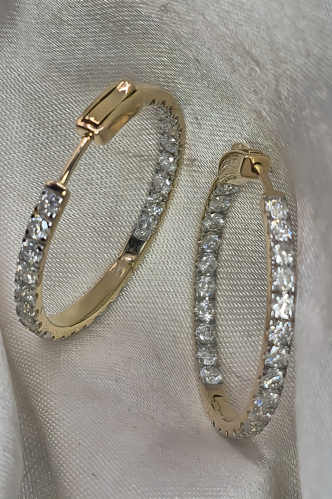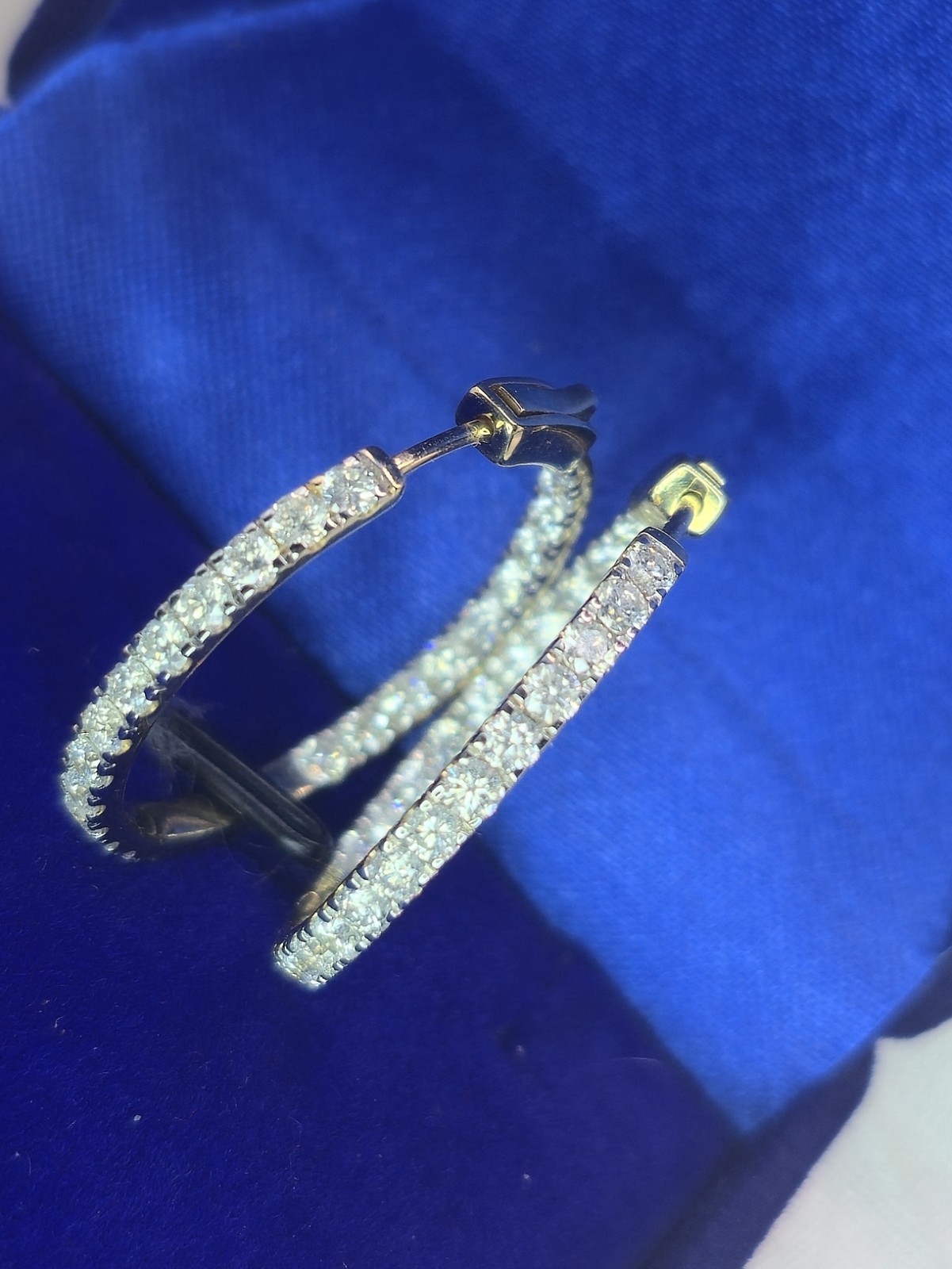 Presented in A Beautiful Bespoke Jewellery Box. Brand New THE FOR KEEPS COLLECTION APRIL BIRTHSTONE 60th & 75th ANNIVERSARY MOH SCALE: 10/10 DESCRIPTION Crafted in 14ct Yellow Gold these Are The Most Amazing, Clever Designed Diamond Hoops I've Found in over 20years in the Jewellery industry. The Cleverly Hidden Push Down Lock Gives The Wearer Peace of Mind, instead of Double Checking Theyre Still There Every 5 minutes. Saving the Best Feature Till Last, The Natural White Diamonds Are Set on The Inside & Outside of The Hoops to Maximise There Sparkle, Rather than Half the Diamonds Lost to Hair. Weight: 5.5 grams 50x Natural Round Brilliant Cut Diamonds Weighting a Total of 1.99ct Colour: G/H/ Clarity: Si1/2 ACCREDITATION Registered with the Nationally Recognised Governing Body of Australia For Gemmology/Valuers to Ensure Industry Standards. All Valuers Are Nationally Registered Members of- - Australian Jewellery Valuers Guild - Jewellers Association of Australia (JAA) - Gemological Association of Australia Member (GAA) Independent Valuation Provided Retail Replacement Value $20,000.00 We Source All Jewellery Directly From The Manufacturer, Guaranteeing Authenticity. All Brand New Pieces Come With A 12 Month Manufacturing Warranty. All Designs Featured on my Marketplace Profile are Available for Special Order, Allowing You to Select Your Preferred Precious Metal and Gemstone. All pieces are sourced direct from the manufacturer. All designs pictured on my Marketplace Profile can be ordered in your choice of metal & desired gemstone through special order. DIAMOND & JEWELLERY FACTS 1477 Archduke Maximilian of Austria proposed to Mary of Burgundy with the first recorded diamond engagement ring. The oldest known diamonds are at least 3 billion years old. Gold isn't produced by Earth, it comes from space via comets, meteorites, & asteroids hitting the planet over 4.5 billion years. Some experts believe mineable Gold deposits maybe depleted as soon as 2035.