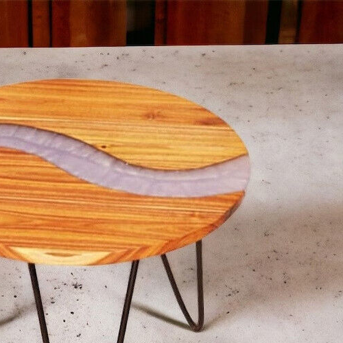 love the table, a true work of art. Price to quality relationship very high. There are a lot of wanna bes out there, but few true craftsmen in this space, and they are craftsmen. Lots of back and forth to get what we desired.. nonlinear edges, curvy river, branch circles within wood, blue resin covering only 20% of table overall, specific length and width, leg style. Shipped via air very quickly too. Two thumbs up!