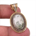 Natural Green Dendrite Opal 925 Sterling Silver Gift TwoTone Pendant 1.50"