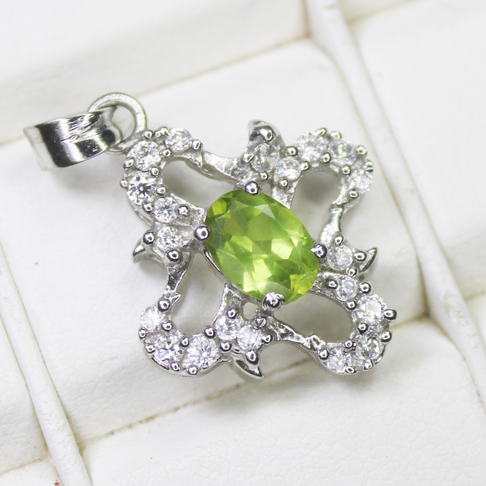 ARBIYA GEMS JEWELRY TYPE : SILVER PENDENT STONE : NATURAL GREEN PERIDOT PENDENT SIDE STONES : ZIRCON PENDENT WEIGHT : 1.95 GRAMS PENDENT METAL : STERLING SILVER METAL PURITY : 925 TREATMENT : NATURAL COUNTRY OF ORIGIN : INDIA HANDLING TIME: 1-3 DAYS DELIVERY TIME : WE USUALLY TAKES 15-25 DAYS BUT MOSTLY IT DELIVERS TO CUSTOMERS WITHIN 15 DAYS RETURN POLICY : RETURN ACCEPTED ON MANUFACTURING DEFECT WITHIN 30 DAYS . RETURN GIVEN AS MONEY BACK OR REPLACMENT FEEDBACK POLICY : PLEASE LEAVE US A POSITIVE FEEDBACK IF YOUR ITEMS DELIEVERED IN GOOD CONDITION