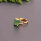 Natural Green Onyx Coffin Ring in 925 Sterling Silver Gold Plated for Lovers