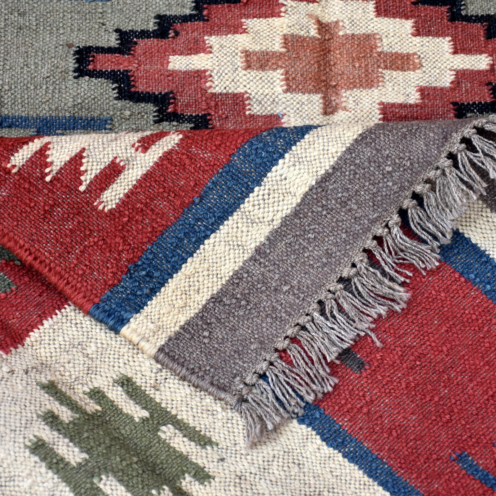 Add warmth and elegance to your space with this handmade wool and jute rug, crafted using age-old traditional weaving techniques. Every piece is created on a loom by skilled artisans, ensuring exceptional quality and attention to detail. ✔️ Premium Wool & Jute Blend – Made with strong natural wool and jute fibers for exceptional durability, rustic charm, and long-lasting beauty. ✔️ Reversible Design – Both sides feature the exact same pattern, giving you double the use and value. ✔️ Natural Dyes – Colors are rich, eco-friendly, and completely washable. No color bleeding or fading during washes. ✔️ Flat Weave & Fine Craftsmanship – Lightweight yet tightly woven, perfect for both modern and traditional décor. ✔️ Custom Orders Welcome – We can create this rug in any size or color as per your requirements. 📌 Note: If you prefer your rug without tassels or fringes, simply inform us. We will customize it for you. This rug is more than just a floor covering—it’s a handcrafted masterpiece designed to beautify your home. Perfect for living rooms, bedrooms, or any space that needs a touch of artisanal charm.