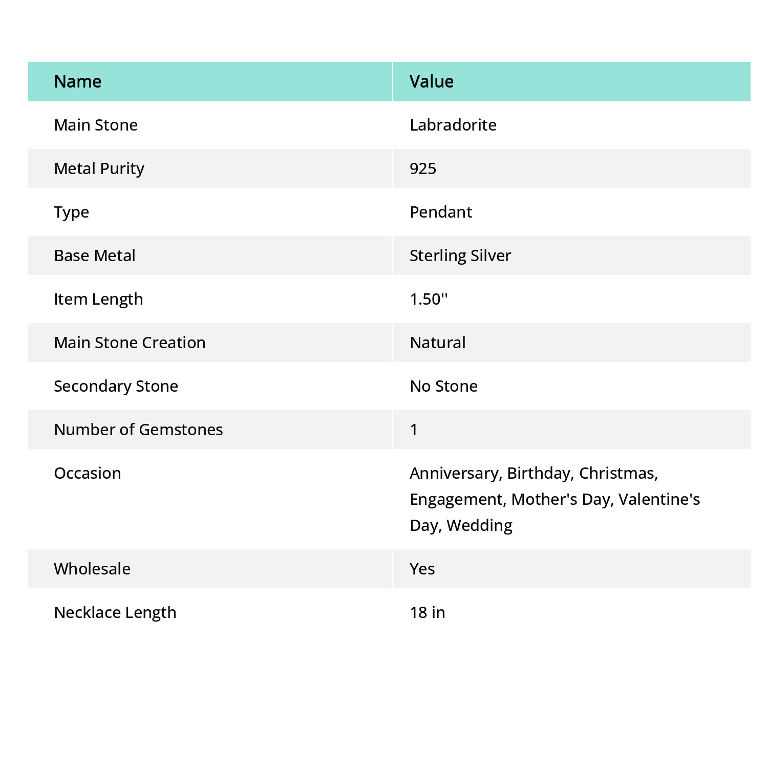 Absolutely stunning pendant! The labradorite stone has a mesmerizing play of colors, and the sterling silver setting gives it a luxurious feel. The craftsmanship is top-notch, and the two-tone design adds a unique touch. It arrived beautifully packaged, making it perfect for gifting. Olivia Jewellerys delivers exceptional quality—definitely worth every penny!