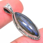 Natural Labradorite Gemstone 925 Solid Sterling Silver Gift Pendant 1.34"