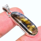 Natural Labradorite Gemstone 925 Solid Sterling Silver Gift Pendant 1.54"