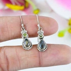 Natural Labradorite,Peridot Gemstone 925 Solid Sterling Silver Earring 1.5"