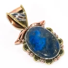 Natural Lapis Lazuli TwoTone 925 Solid Sterling Silver Gift Pendant 1.25"