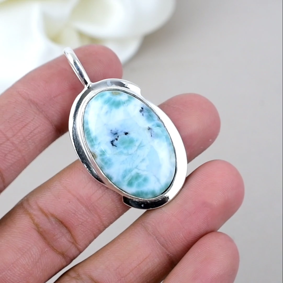 Natural Larimar Gemstone Handmade Sterling Silver Pendant Love Gift