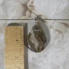 Add a touch of natural elegance to your wardrobe with this stunning pendant necklace. The teardrop-shaped crazy lace agate stone is set in a sterling silver chain, measuring 18 inches in length. The stone boasts a beautiful multicolor design in shades of green, white, and red, making it a perfect addition to any nature-themed outfit. The lobster claw clasp ensures a secure closure, while the .925 metal purity guarantees durability. This necklace is perfect for those who appreciate unique and stylish jewelry pieces.