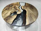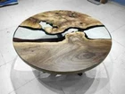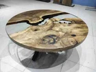 Natural Olive Wood Epoxy Resin Live Edge Epoxy Coffee Table, Round Transparent
