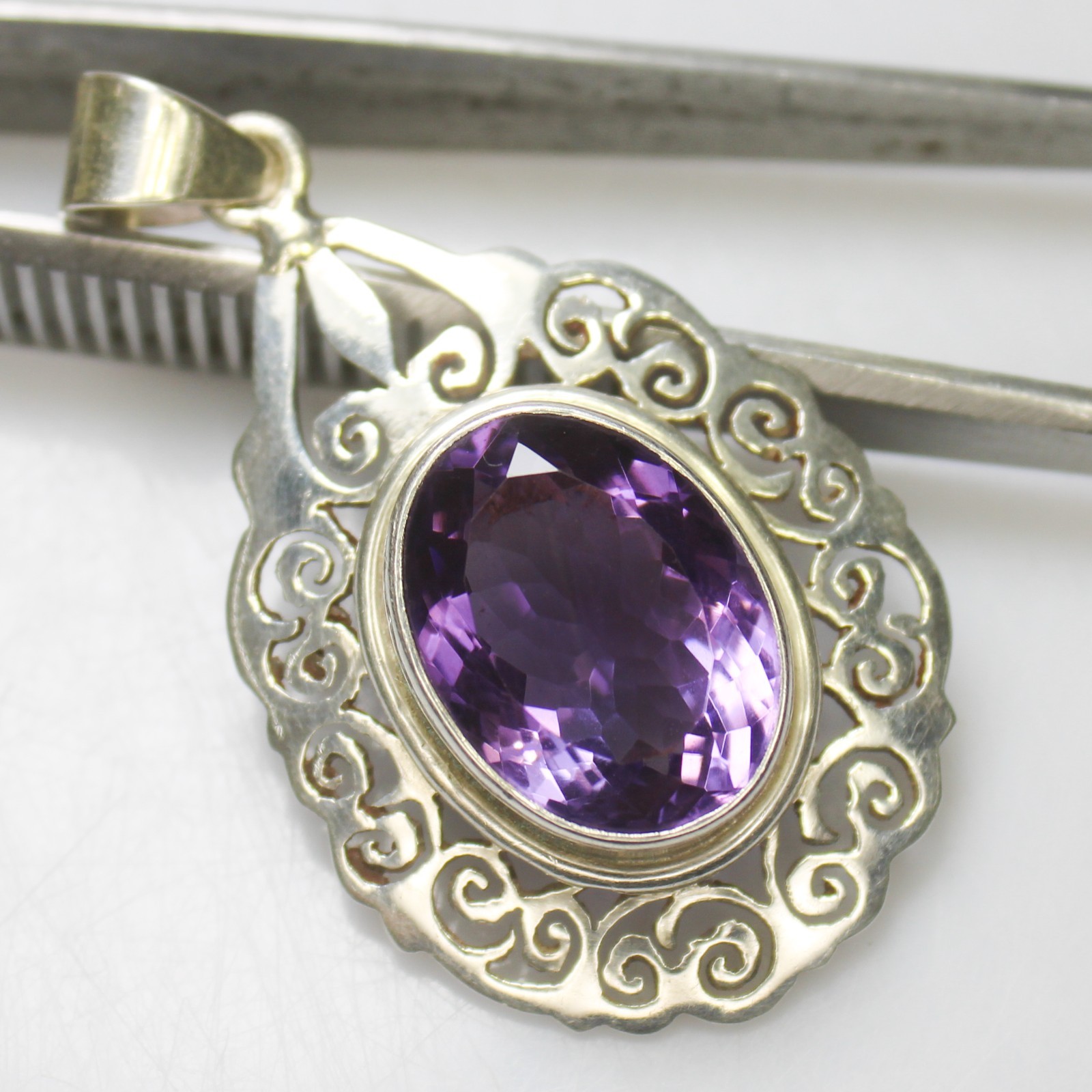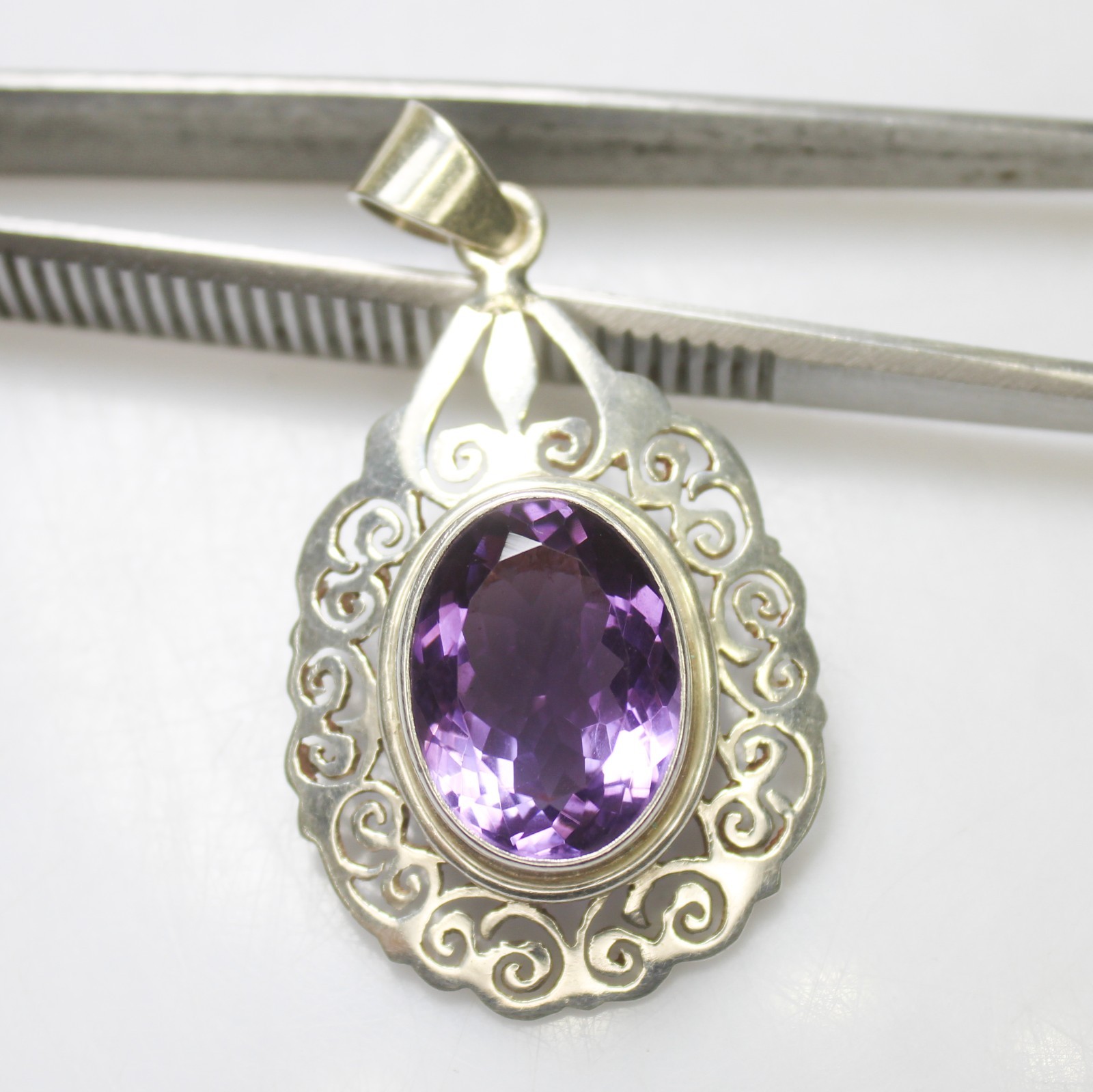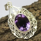 ARBIYA GEMS JEWELRY TYPE : SILVER PENDANT STONE : NATURAL PURPLE AMETHYST PENDANT SIDE STONES : NO PENDENT WEIGHT : 6.90 GRAMS PENDENT METAL : STERLING SILVER METAL PURITY : 925 TREATMENT : NATURAL COUNTRY OF ORIGIN : INDIA HANDLING TIME: 1-3 DAYS DELIVERY TIME : WE USUALLY TAKES 15-25 DAYS BUT MOSTLY IT DELIVERS TO CUSTOMERS WITHIN 15 DAYS RETURN POLICY : RETURN ACCEPTED ON MANUFACTURING DEFECT WITHIN 30 DAYS . RETURN GIVEN AS MONEY BACK OR REPLACMENT FEEDBACK POLICY : PLEASE LEAVE US A POSITIVE FEEDBACK IF YOUR ITEMS DELIEVERED IN GOOD CONDITION