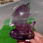 232G Natural Purple Green fluorite Handcarved dolphin Crystal Specimen